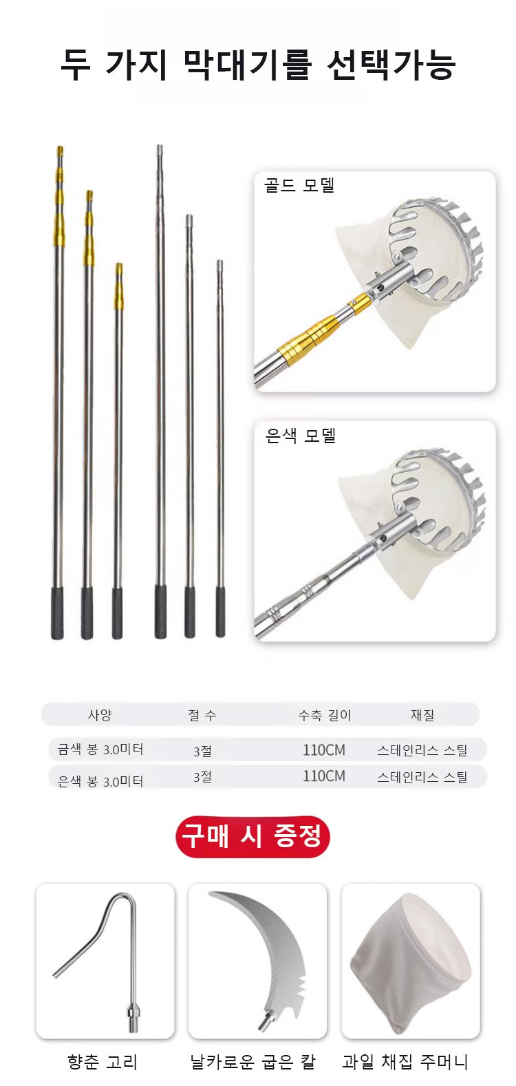 【업그레이드 엠보싱 막대】신축 과일 따기 기구